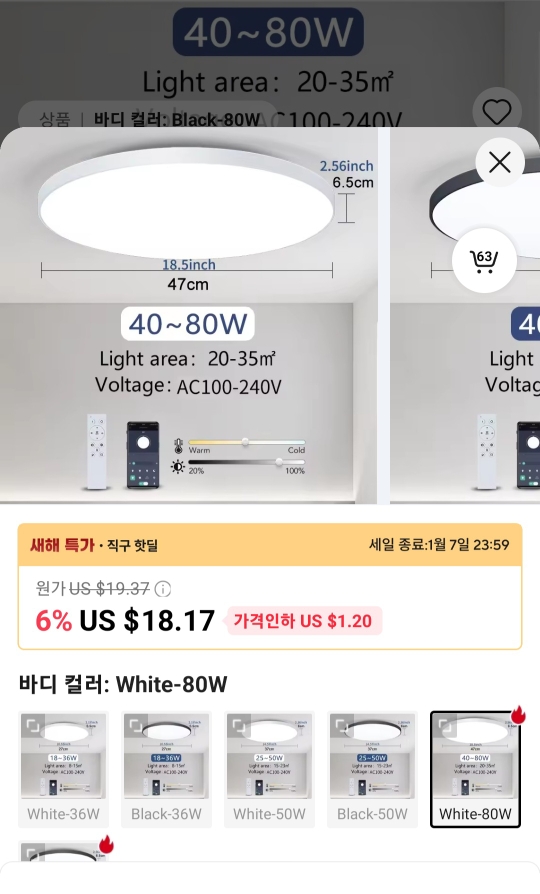 80w is more than enough for a big living room, i recommend it, installation was pretty easy and the light is very strong