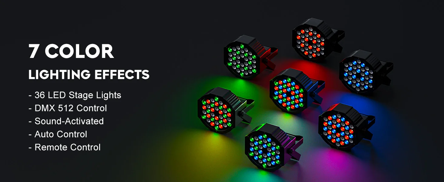 Somspot 4/8PCS 36LEDs RGB Par Lights Remote & DMX Control
