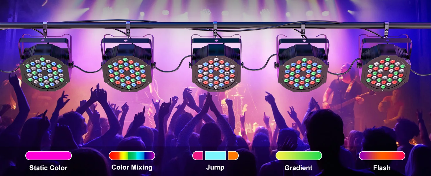 2. 【Multiple control modes】 Supports self-powered, voice control, DMX512, master-slave mode and remote control, allowing users to flexibly choose the control mode to suit different needs.