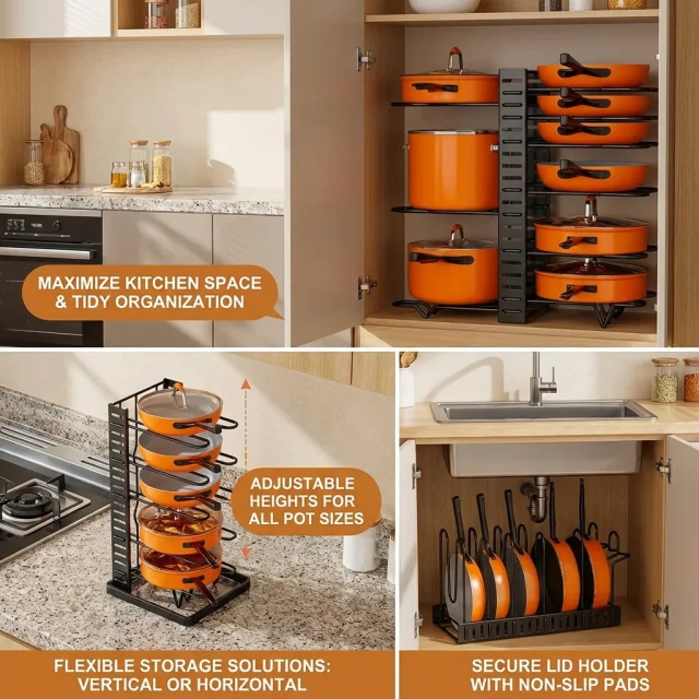 We are confident that this pot organizer will exceed your expectations—easy to assemble, highly functional, and built with durability in mind. Upgrade your pantry organization today by clicking ‘Add to Cart’!