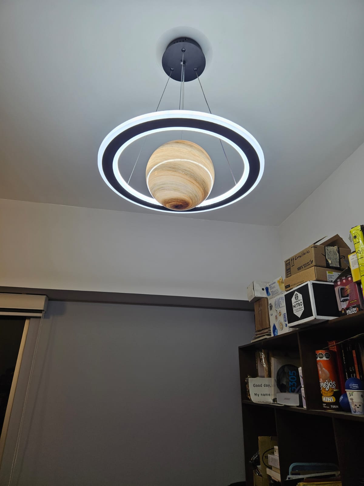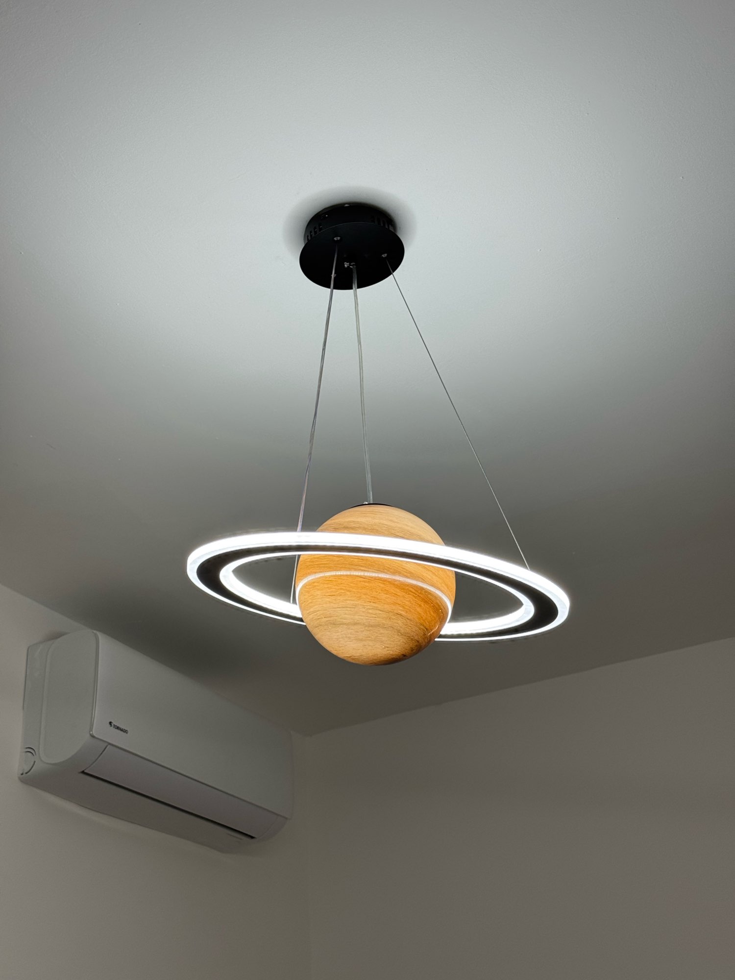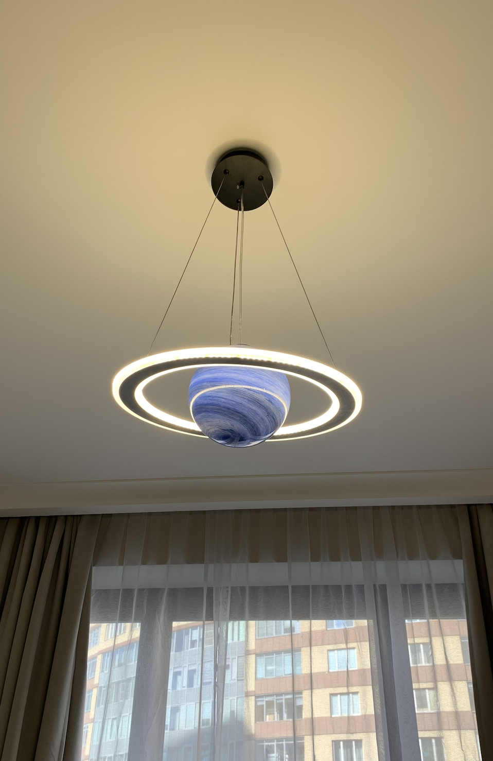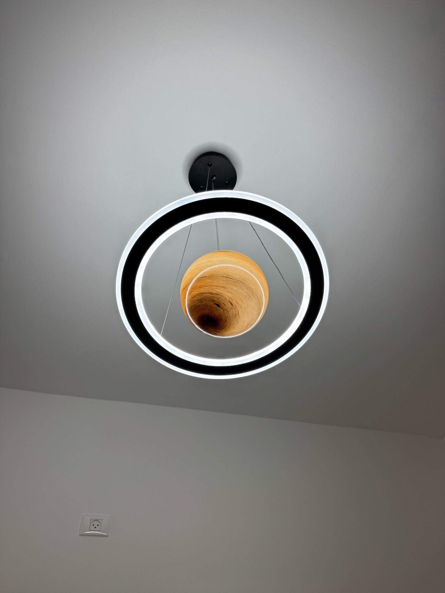 I’m very happy with this purchase. The lamp looks even better in real life than in the pictures. The combination of the sphere and the led rings creates a warm yet contemporary atmosphere. The light is bright but pleasant to the eyes, perfect for a bedroom. Installation was quite simple, and the materials feel solid and well-made. It also arrived well packed, with no damage. Highly recommended for anyone looking for a modern and decorative ceiling light. Would definitely buy again!