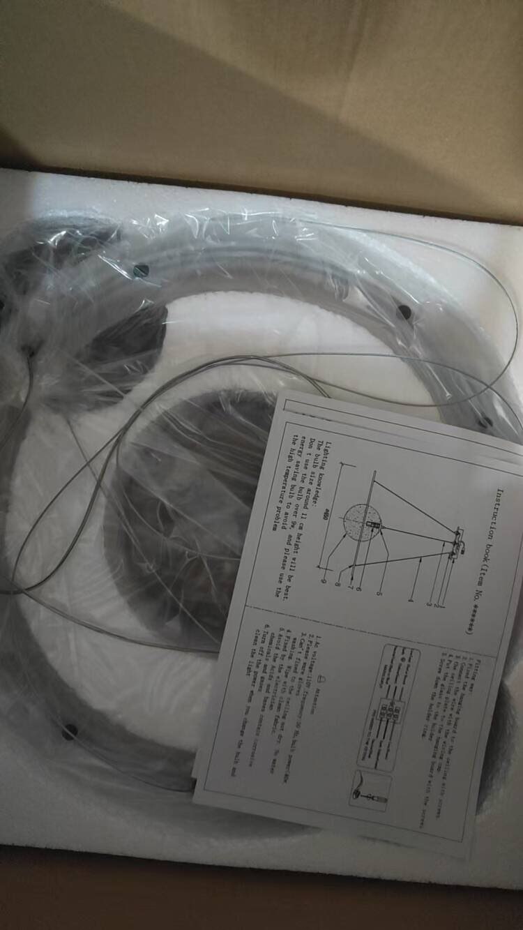 The lamp arrived very well packaged. The electrician connected it in about 30 minutes. It looks spectacular!