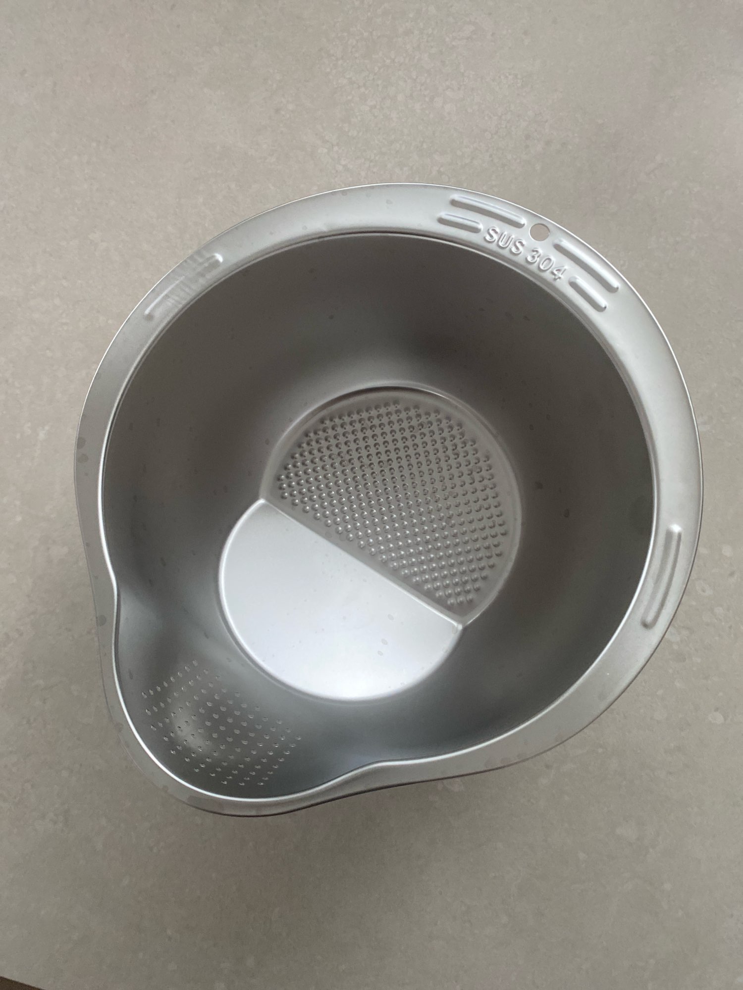 The product is well made. It's also convenient and practical to use. It is perfect without any damage or denting. The corner part on the back of the product is also neatly curved. By processing it with sanding instead of polishing, there is no risk of hurting your hands. The capacity is small, so it seems like it can comfortably wash about 4 to 5 servings at once. I recommend it.