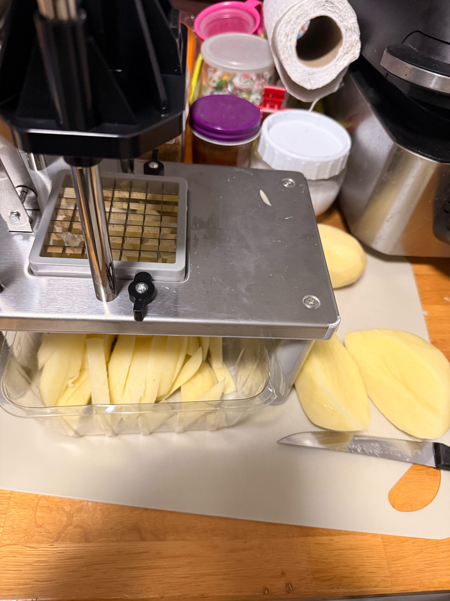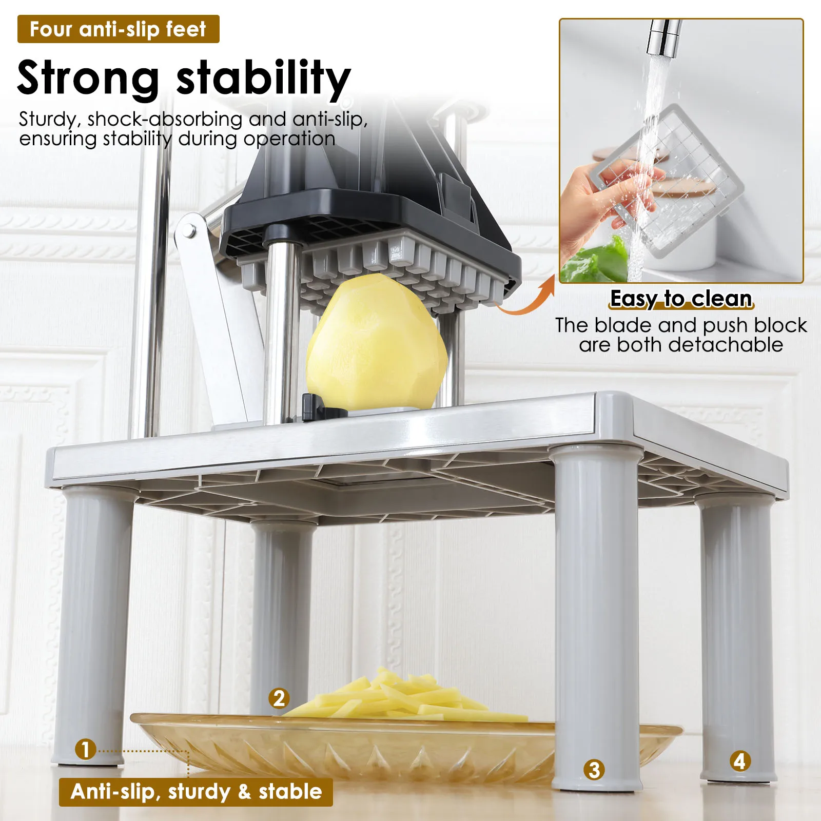 Great device at first I was afraid it wouldn't cut with the smaller grid. I highly recommend it for anyone who loves fries.