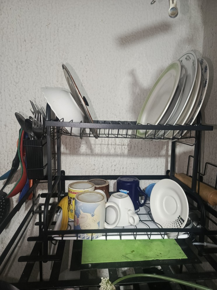 Puntos de bala:1. Soporte resistente: nuestra tendedero se construyó para soportar un uso pesado. Fabricado con materiales gruesos de acero al carbono, es resistente y duradero y puede contener guardar sus platos sin observación ni vuelco. Disfrute de un soporte duradero para sus necesidades de secado de platos. 2. Útil y útil: evitan contadores desordenados en su cocina usando esta rejilla para platos antioxidante que presenta un tubo de drenaje de humedad incorporado para un secado rápido. 3. Práctico acceso a utensilio: nuestra tendedero para platos presenta una estructura integrada bien diseñada, con zonas accesibles para sus utensilios. Ahorre tiempo y esfuerzo con facilidad.4. Amplia gama de usos: mantenga su encimera organizada con nuestro tendedero ampliamente aplicable que puede secar platillos, tazas, tazones, palillos, platos y platos.