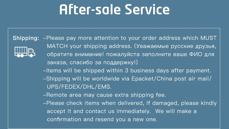 Packages from our warehouse in China will be shipped by ePacket or EMS depending on the weight and size of the product. Packages shipped from our US warehouse are shipped through USPS.