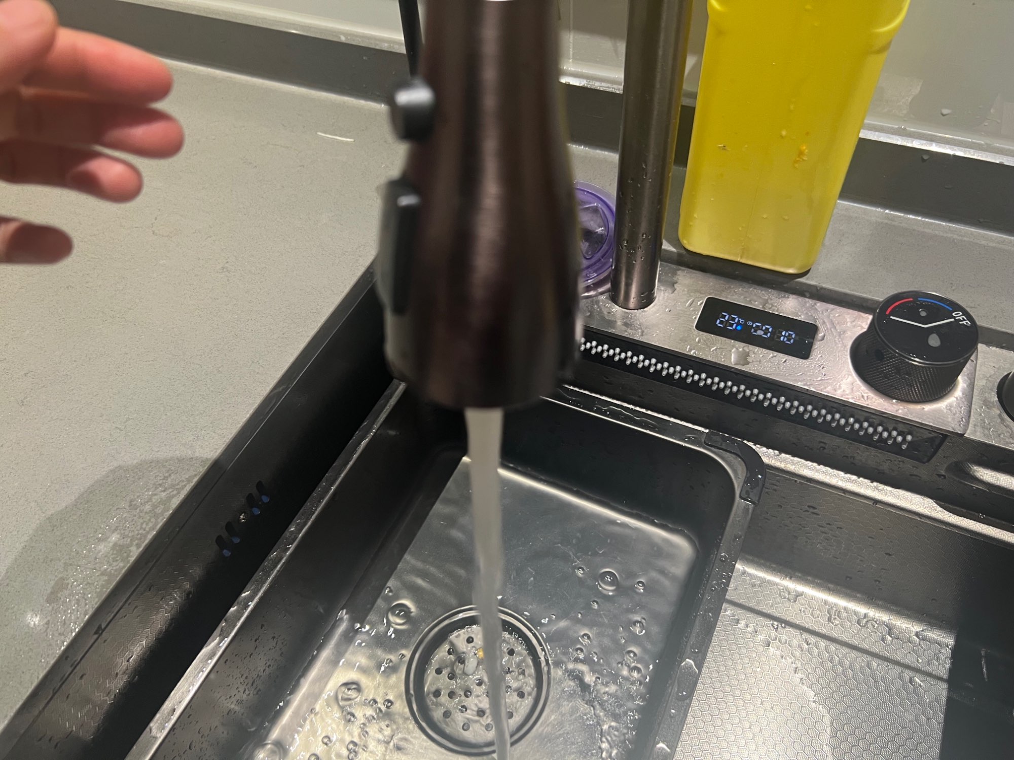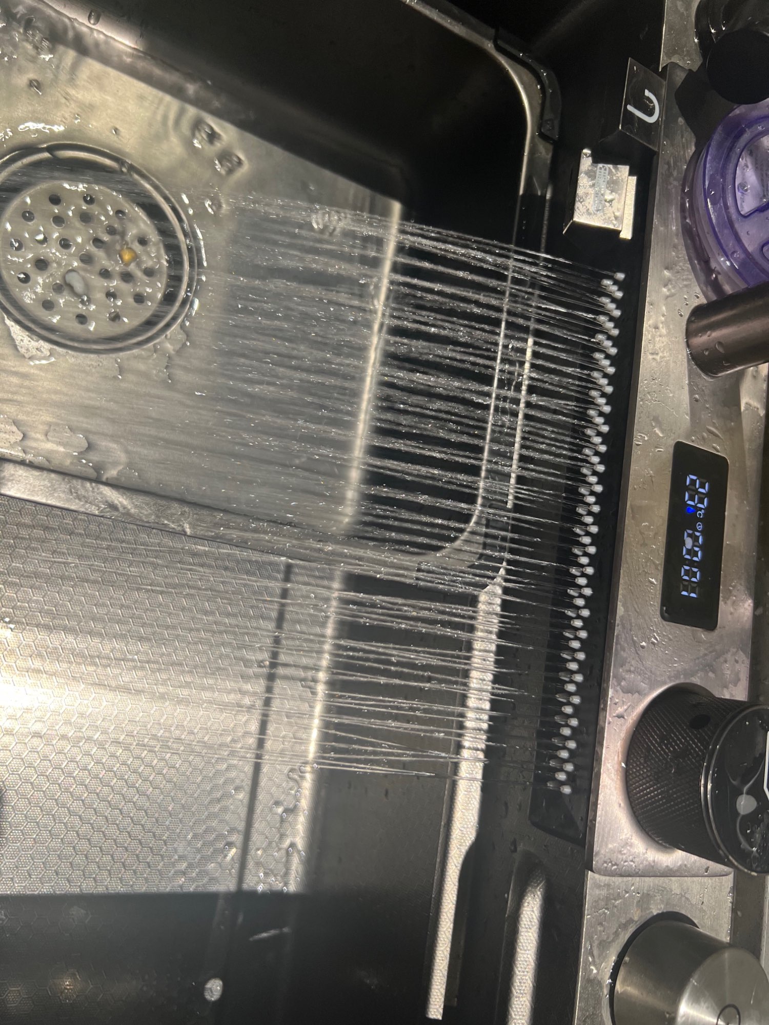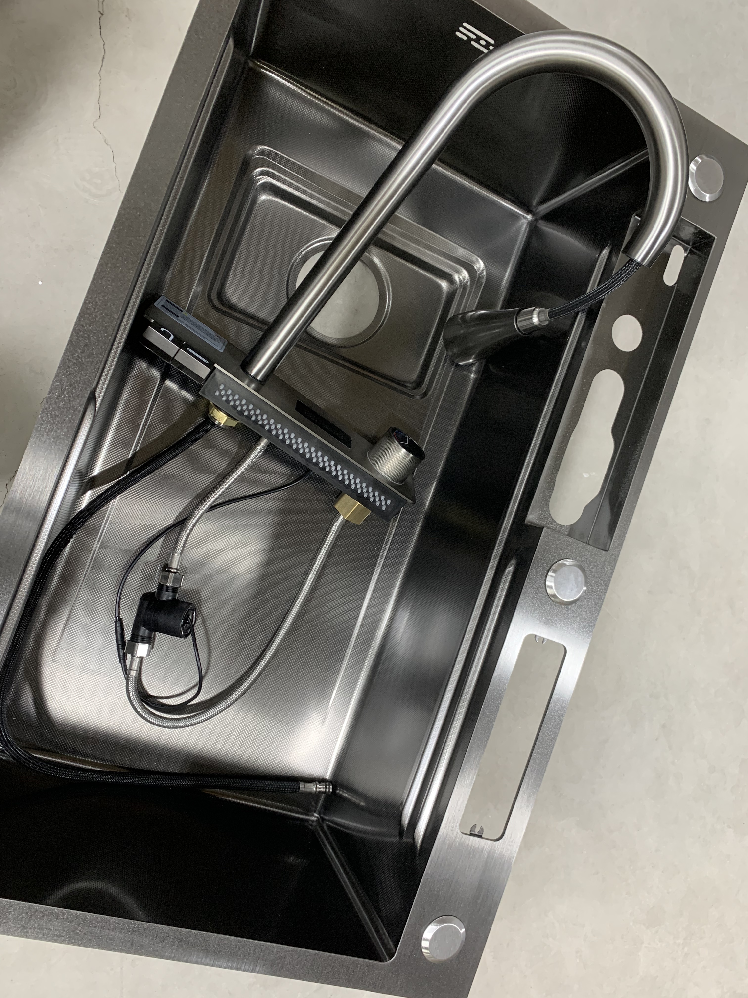 The sink has a scratch-resistant nano relief, drains quite quickly, and is of good quality.