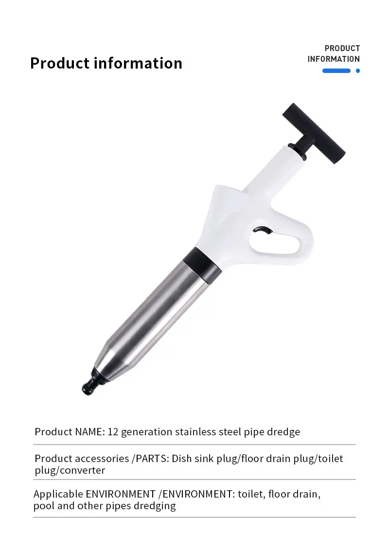 Stainless Steel Toilet Pipe Dredger Pneumatic Household