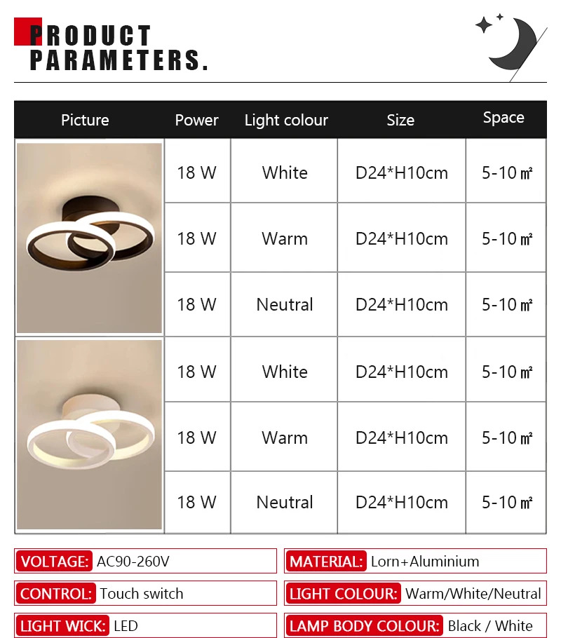 Circular appearance, home lighting, suitable for lighting in many scenes such as corridors, bathrooms, living rooms, and hallways.