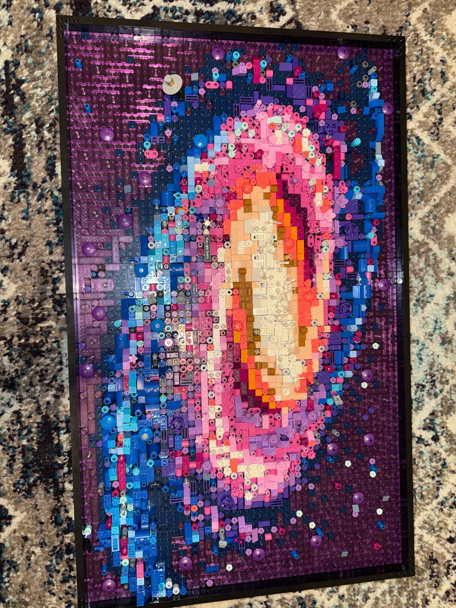 Just get the dupe! This was amazing. It took 35 days to get to me after it shipped, which was around the holidays so that’s still great. All the bags came numbered, the instructions were easy to follow. The quality is just great. I love legos and i couldn’t justify spending $200 on the lego brand. This was $66 on sale and i am beyond satisfied. None of the pieces even fell out when i was putting it in the frame! The only difference between this and the original are the colors. The background is a lighter purple and some other colors are a little different but other than that, it’s a great dupe! I am so happy with my purchase! Also, it came with every piece needed. No extras, and none missing! Literally perfect.