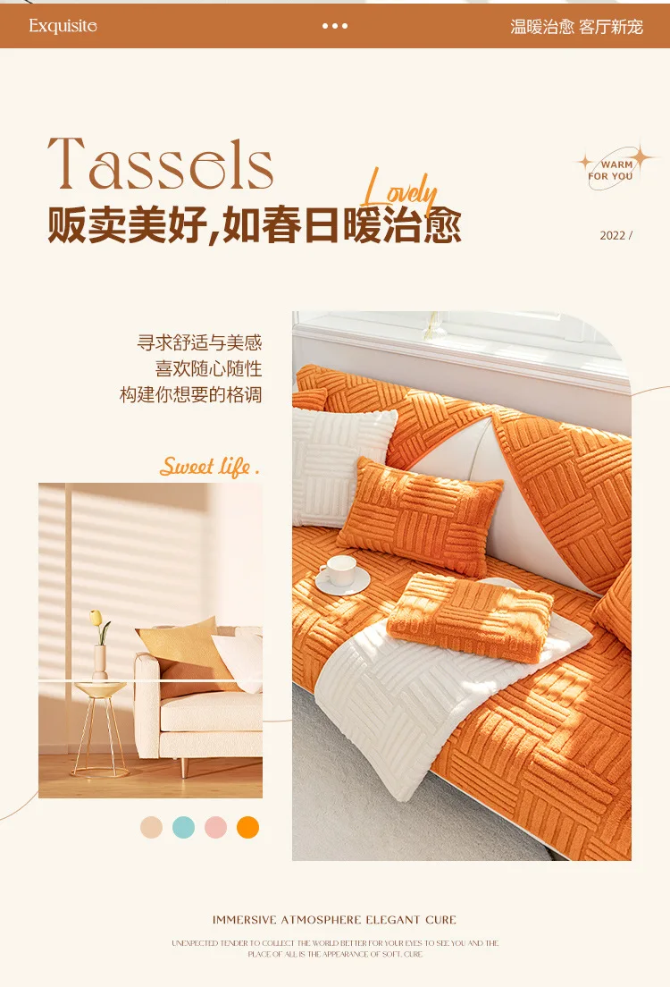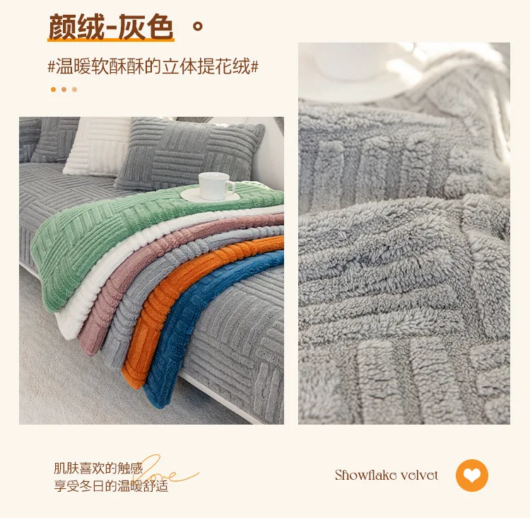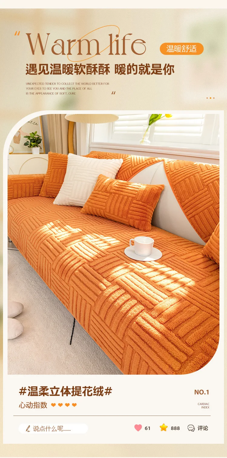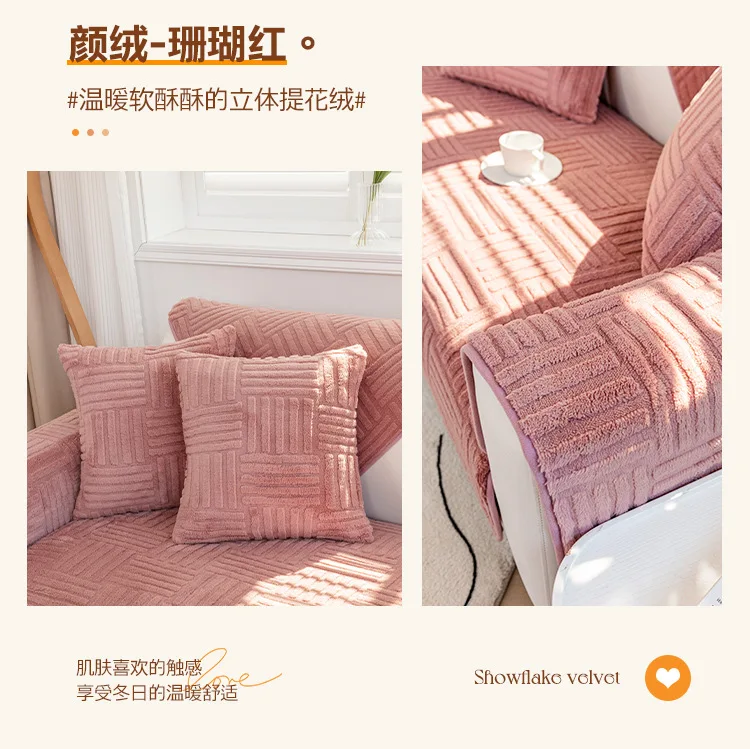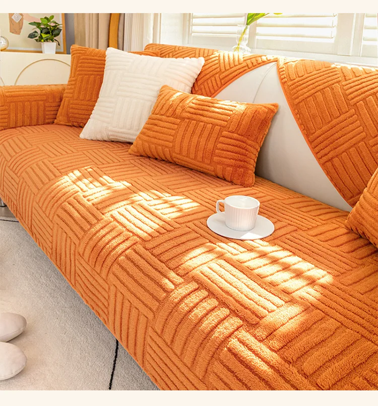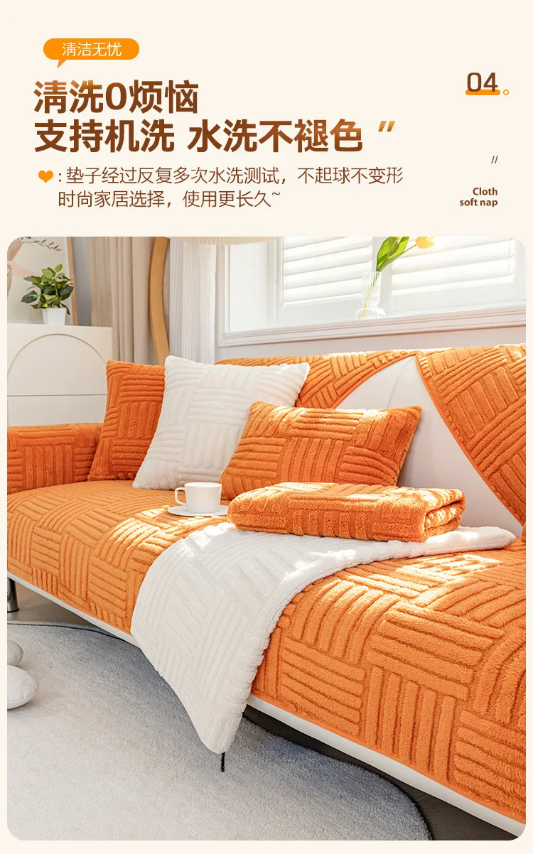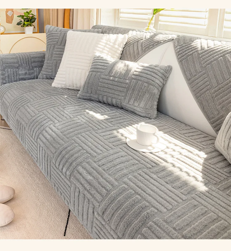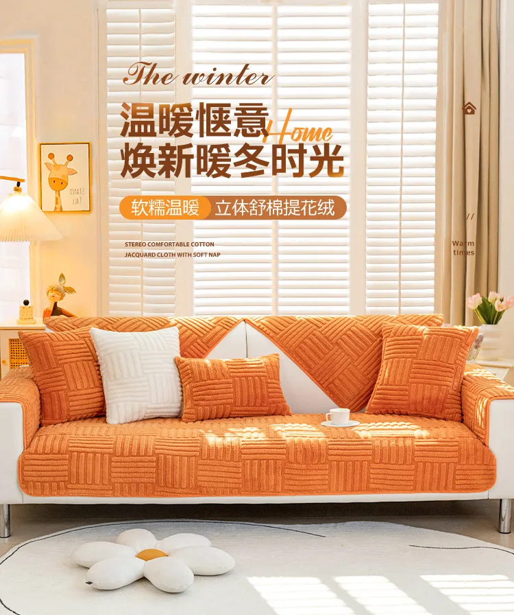 Thickened Plush Sofa Cushion Winter Jacquard Warm Living Room Sofa Cover