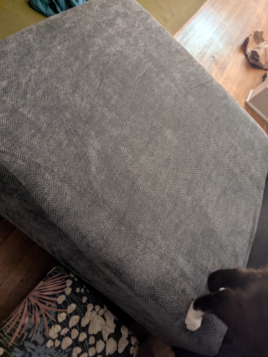 It arrived quickly just as described, fits well, is pleasant to the touch, and the tone is very similar to that of the sofa.