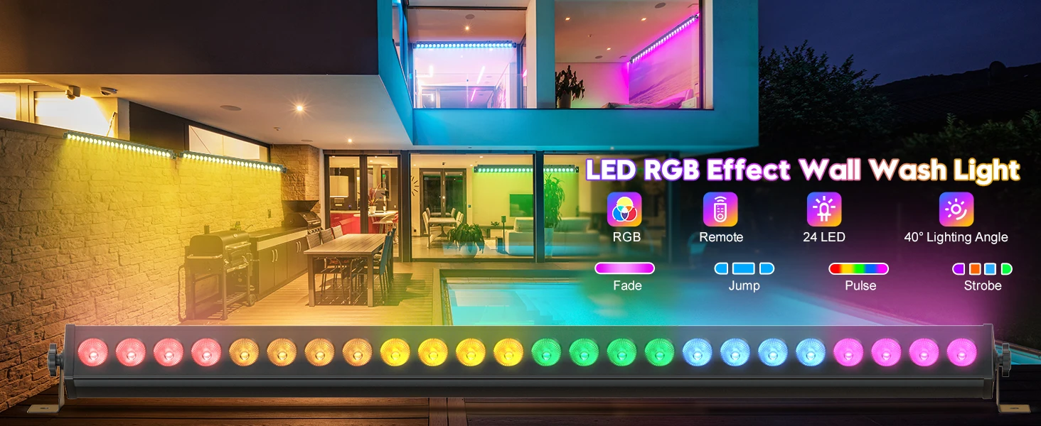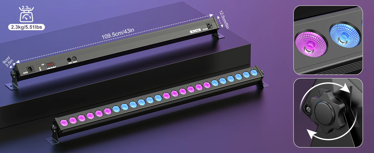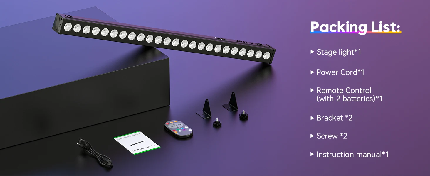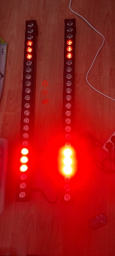 Nice bar with 24 leds grouped as 3 led segments to be controlled via dmx and also by a remote control for easy manual operation 👍🏻 It remembers the last mode on power loss