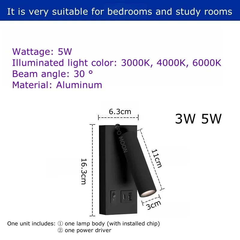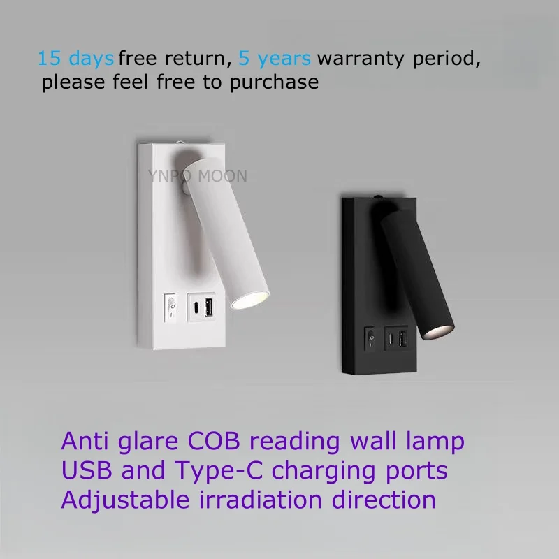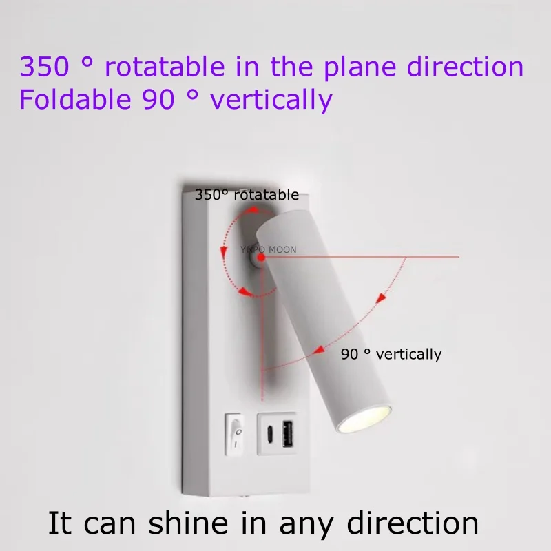 USB Charging Type-C Rotating Surface Mounted Reading Wall Light