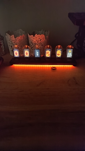 Adopts 6pcs IPS LCD screen to display the time number image with glass cover making it looks like a real vacuum nixie tube clock glowing when power on. The dial supports DIY settings, which can be either a desktop clock or an electronic photo album, which is the best gift for your friends and family on birthday, Christmas and New Year