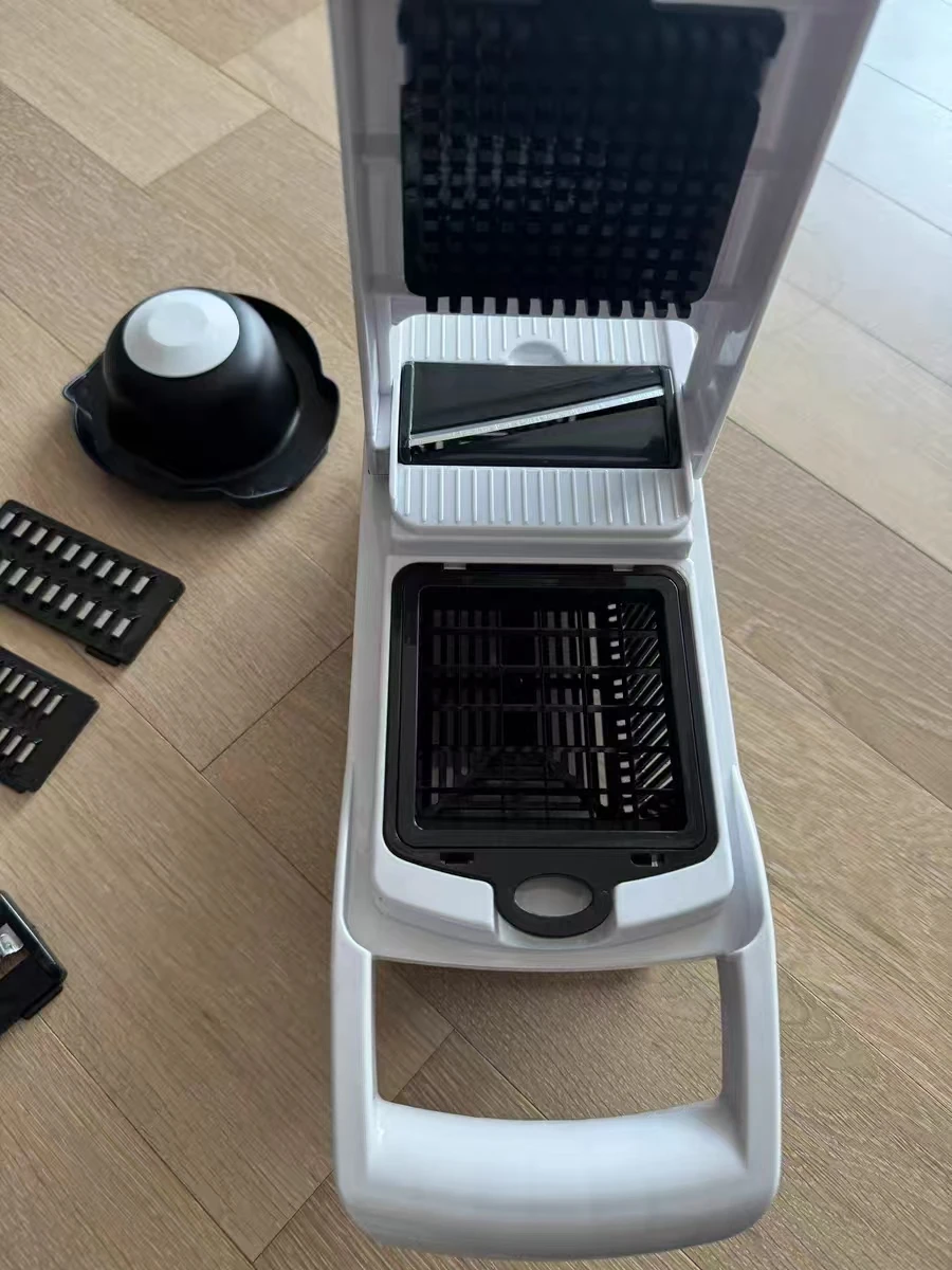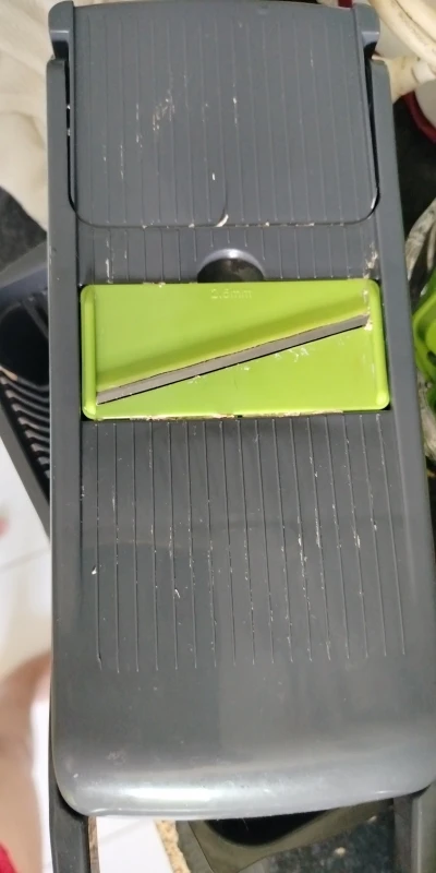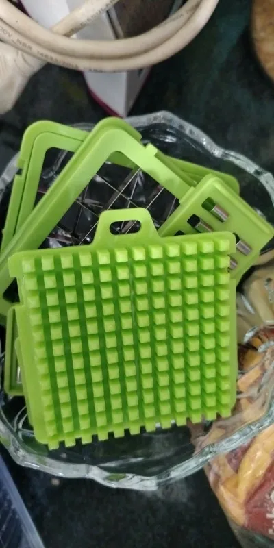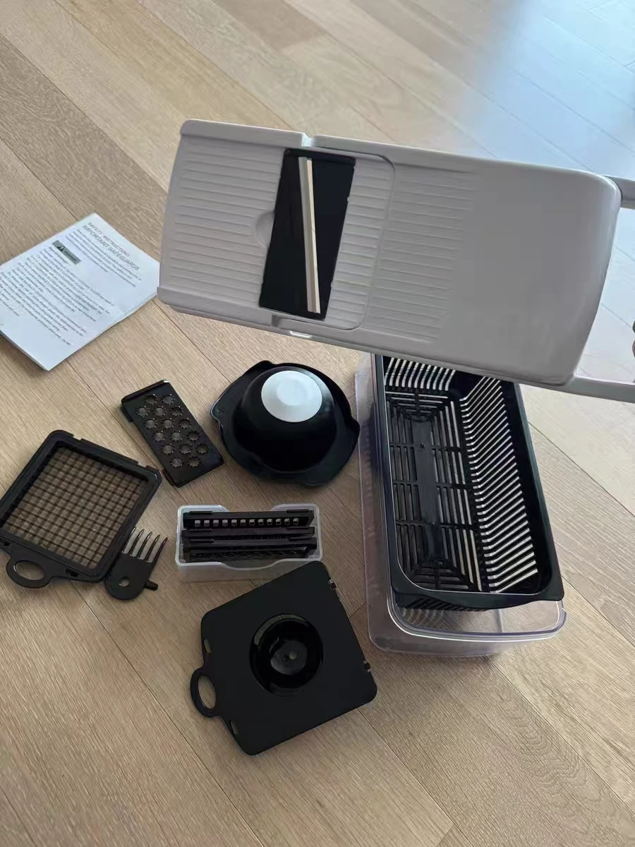 It arrived very quickly, has good quality, and cuts vegetables perfectly. I haven't tested it with potatoes, but with tomatoes and other vegetables, it was very practical. Cleaning is also very easy; it comes with some little tools to assist with cleaning. Perfect. I got a discount in coins which made it even better.