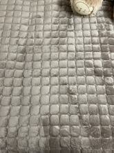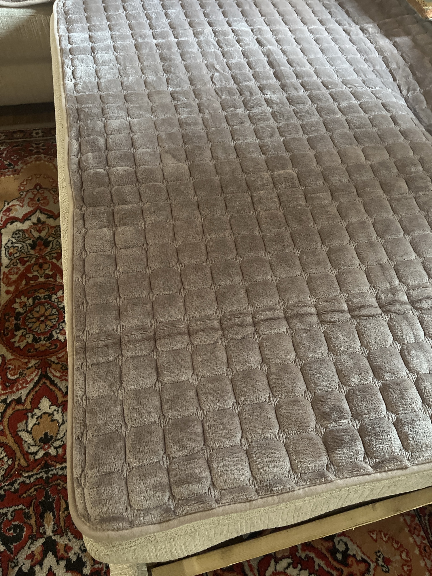 It’s very soft and comfortable! I love the color which is pretty close to the picture, perhaps a little lighter. It’s thick and has an anti slip layer underneath