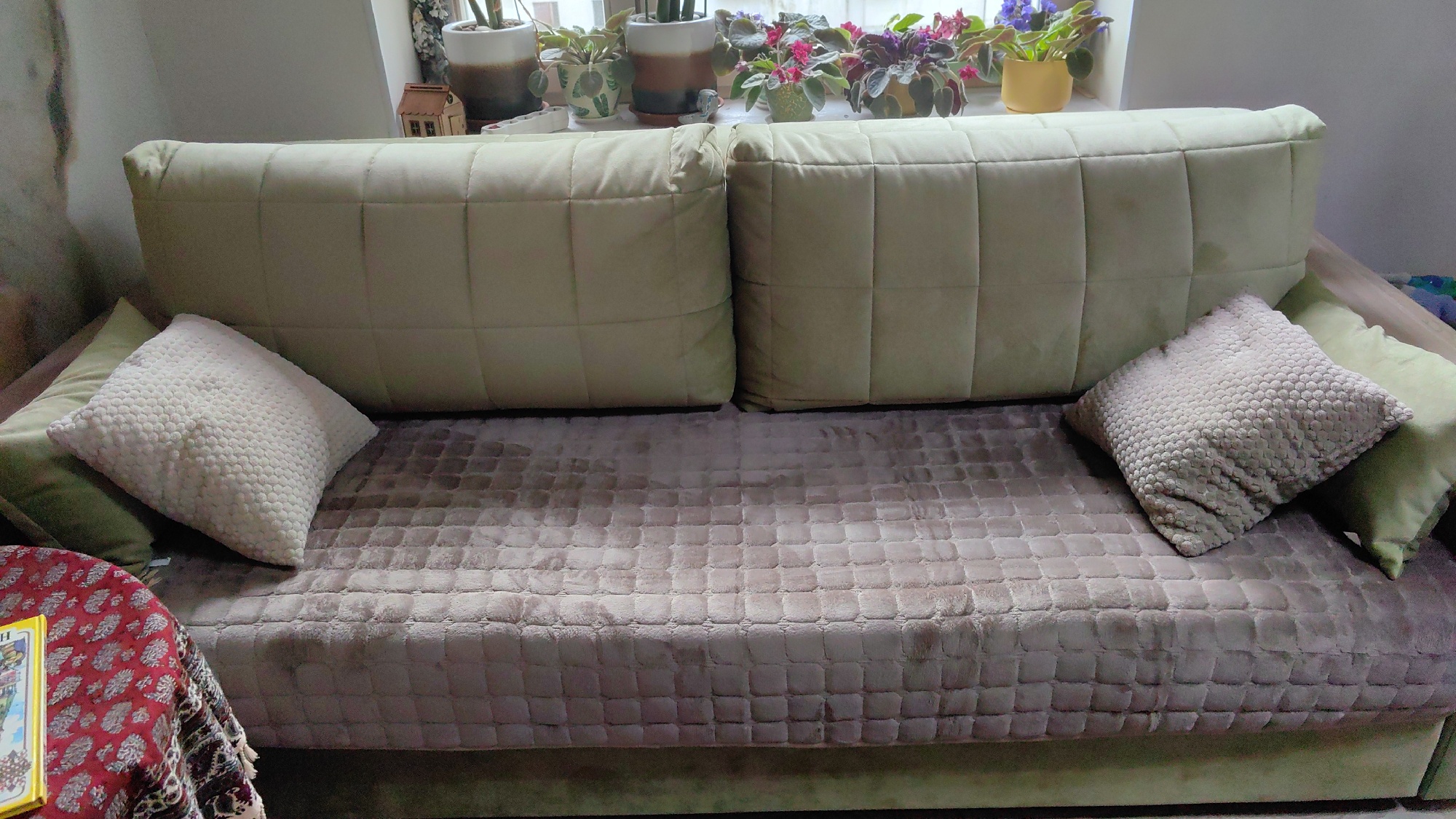 The covers are wonderful, the color M would be more suitable, light gray, but... they are very pleasant to the touch, they don't slip off the sofa.