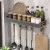 Wall Mount Utensil Holder Multifunctional Spice Organizer Shelf with Hooks Kitchen Hanging Storage Wall Shelf