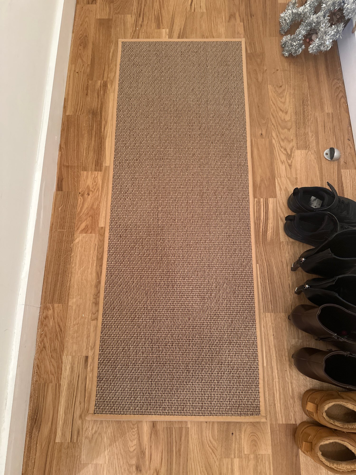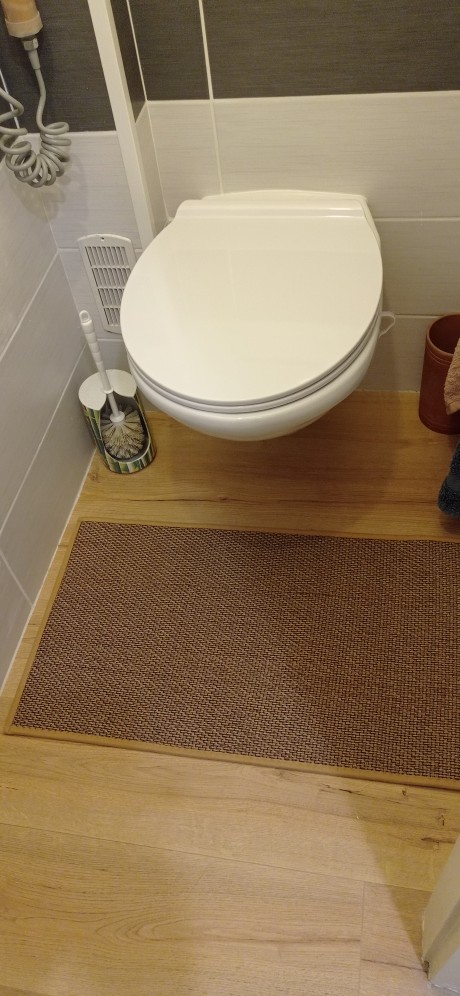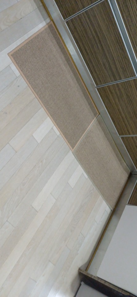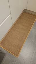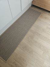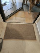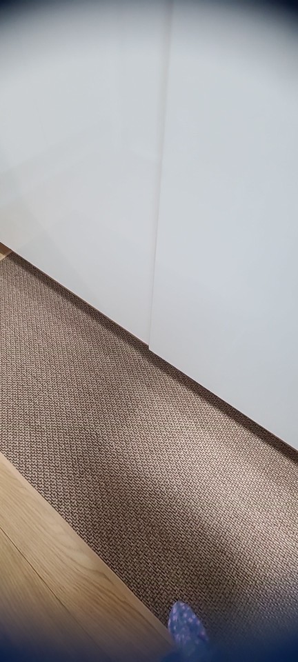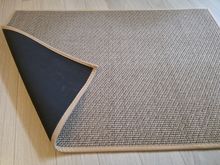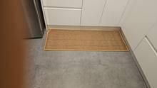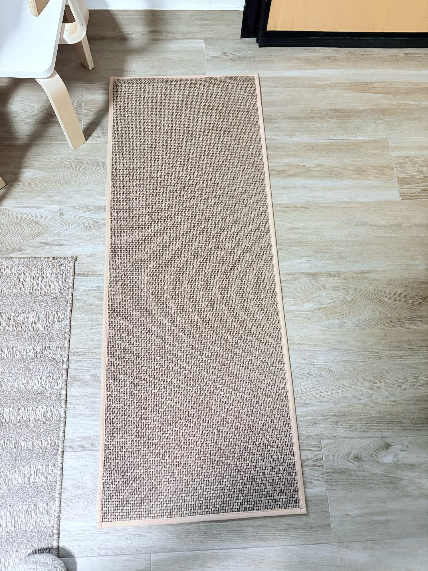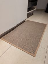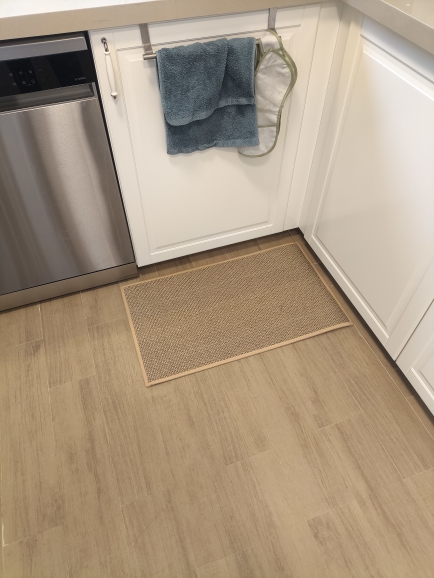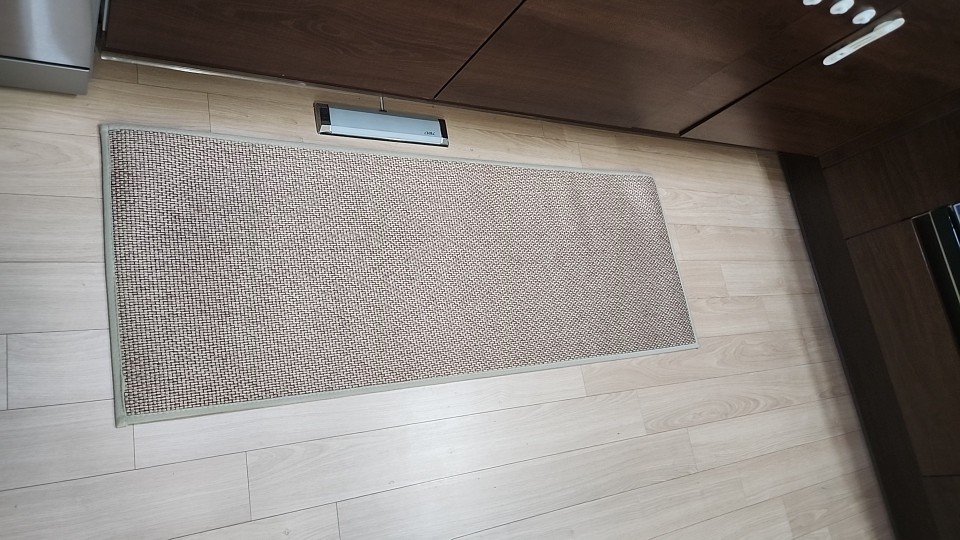 I bought two brown ones, but I received one brown and one gray one, which was disappointing. However, the texture is soft and it doesn't move around; it stays well fixed. It's like cotton fabric, so the cats thought it was a scratching post and scratched it at first. I'm very satisfied; it's neat and matches well with the wooden grain jute floor.