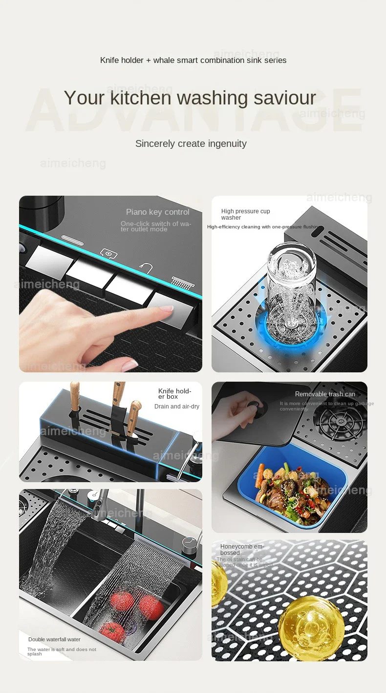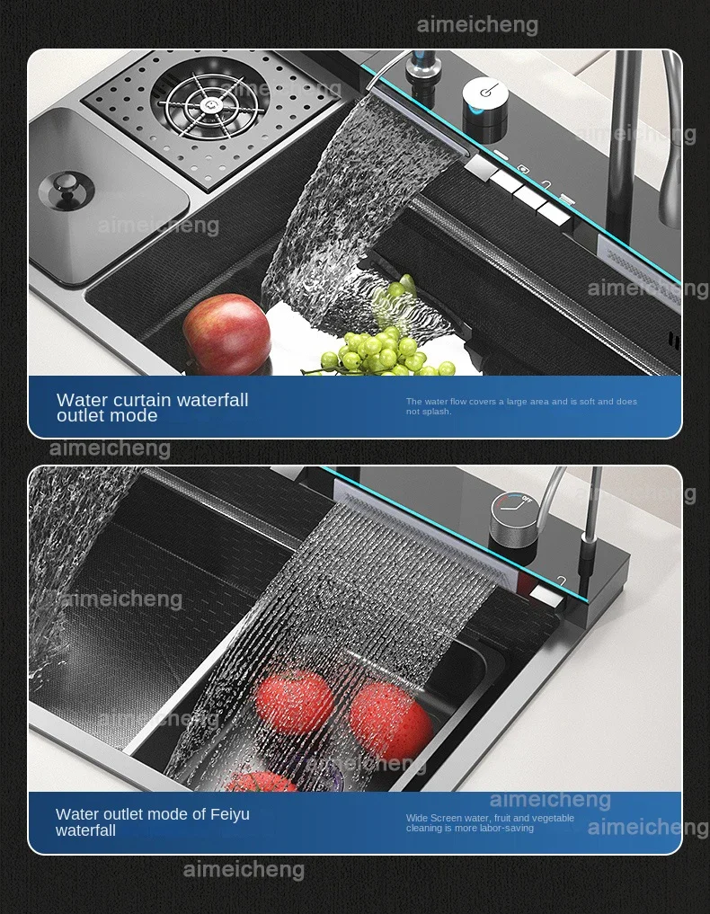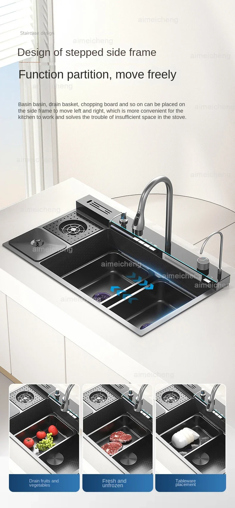 Waterfall Large Single Sink Kitchen Stainless Steel with Trash Can