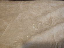 Liquid stays on top. Tried it and played with droplets for few minutes :) when the droplet fell on the old cover, it soaked it imediatelly. Very satisfied. The cover is very light and thin, which ia a big plus. Feals good on the touch. The only thing i would have ideally liked, for it to be a bit more blue. It is very light blue. A bit whashed put colour. But still very satisfied.