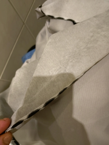 It's thinner than I thought. After washing, the inside got a bit wet but the outside is fine, so it's okay. It's nice that it's big.