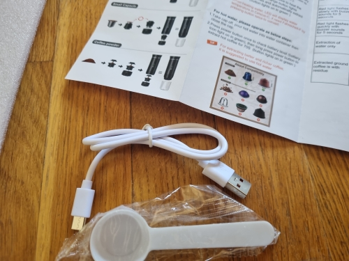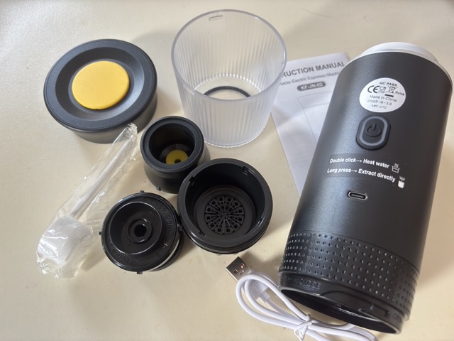 Excellent product, you can make large Dolce Gusto capsules, small ones like Nespresso, or put ground coffee in. Know that the maximum water capacity to fill is 60ml. It can heat water, which the battery can handle to heat cold water about twice, or you can put it already hot and let it dispense water (this way the battery can last much longer). Comes with everything in the photo and with a USB C charger. Good purchase.