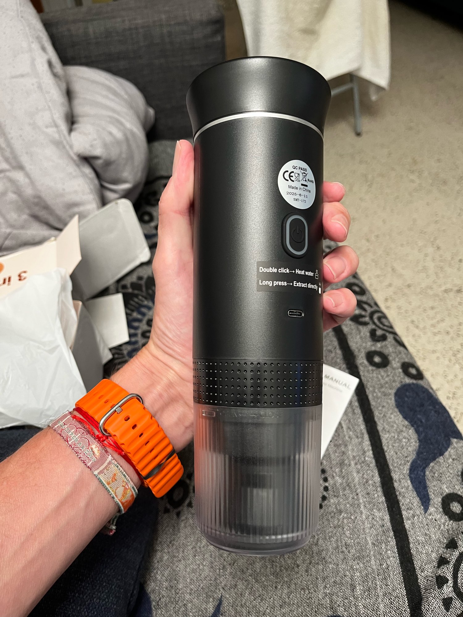 The 12V rechargeable portable coffee maker is exactly as I imagined it: compact, functional, and perfect for those like me who love to enjoy a good coffee even on the go. The quality of the coffee is excellent and the ease of use makes this product truly practical and convenient. The only negative note was the delivery via Poste Italiane: the package arrived slightly crushed and, despite me being at home all day working remotely, the courier claimed that there was no one for the delivery, postponing it to the next day. This caused a slight inconvenience, but otherwise the product is excellent and I recommend it without reservation.